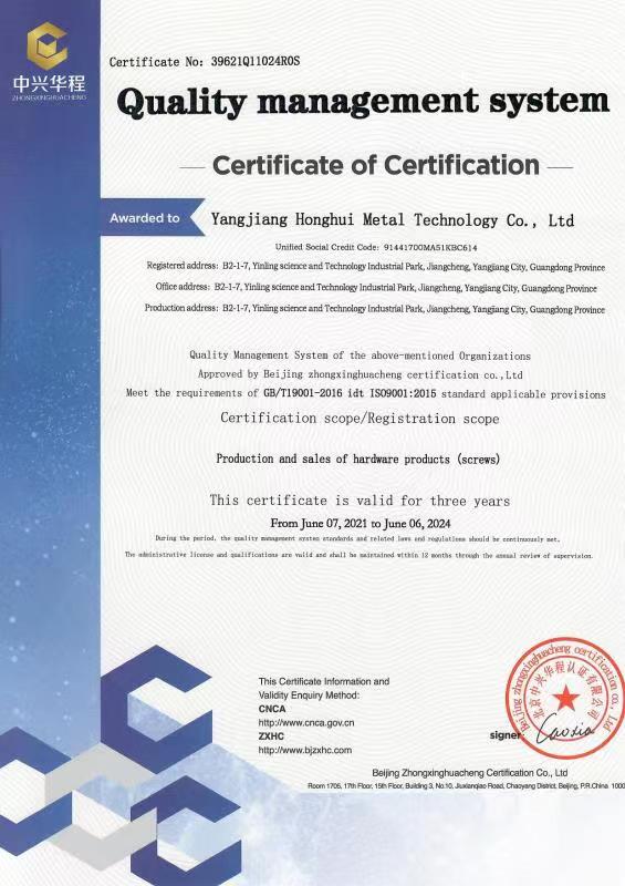 廣東宏惠金屬公司是家20多年一直專注鉆尾螺絲開發(fā)與生產(chǎn)的企業(yè),是國內較早做鉆尾的廠家之一,同時也是國內專業(yè)開發(fā)生產(chǎn)鉆尾螺絲的企業(yè)之一。 我司地址為于廣東省陽江市江銀嶺科技園距沈海高速白沙出口不到2公里,距陽江高鐵站也只有十余公里交通便利。 公司占地120畝,擁有超500臺套專業(yè)設計 生產(chǎn) 檢測設備。一個超200人的專業(yè)團隊,能夠嚴格按照ISO9001質量體系要求生產(chǎn)符合GB DIN AS3566 ANSI JIS BS等標準的產(chǎn)品,生產(chǎn)銷售各種高品質緊固件系列產(chǎn)品,為中高端客戶提供優(yōu)質服務。也可按照客戶要求設計生產(chǎn)各種鉆尾,年產(chǎn)高品質碳鋼 不銹鋼鉆尾螺絲2萬余噸.在各大客戶的鼎力支持下產(chǎn)品暢銷全國,并遠銷亞 非 拉 歐等地,在這20多年發(fā)展的道路上我司堅持“以質量求生存,以信譽求發(fā)展”的精神理念不斷完善公司體系。